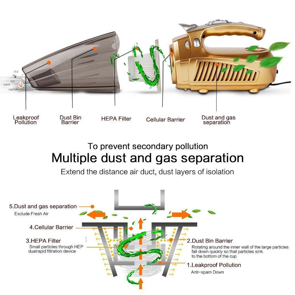 • LED light and yacht streamlined design, makes it practical, long service time. convenient disassembly & simple operation, only need to be plugged into the 12V car cigarette lighter socket. Combination of non-slip mat, heat-dissipation hole, fasten button, HEPA filter bag;